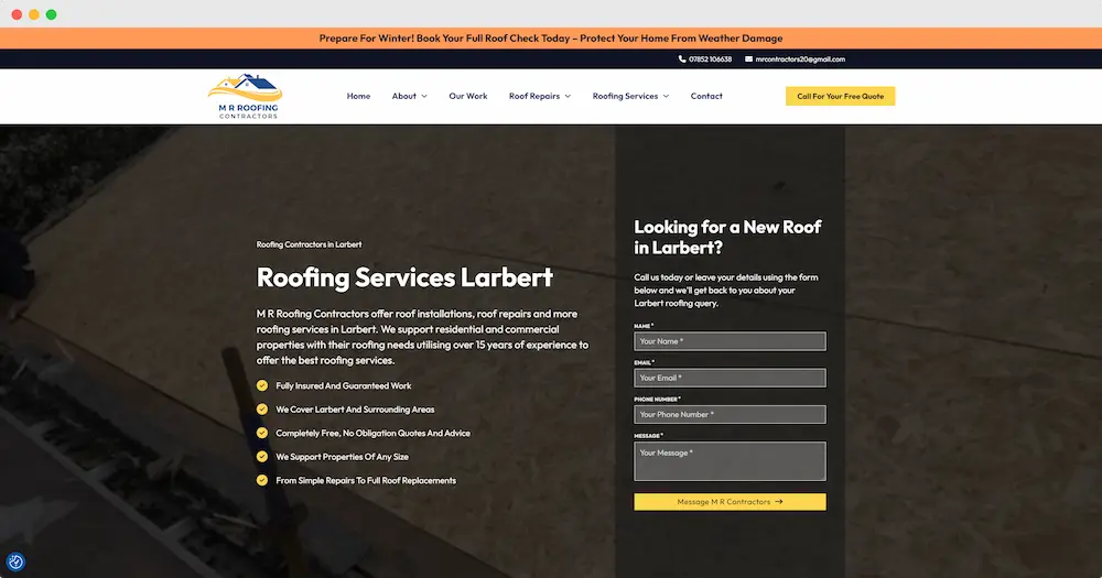 M R Roofing Contractors jumped on a custom plan similar to our platinum monthly plan which included a full, brand new custom website, Google Business Profile and ongoing monthly Local SEO & social media marketing.