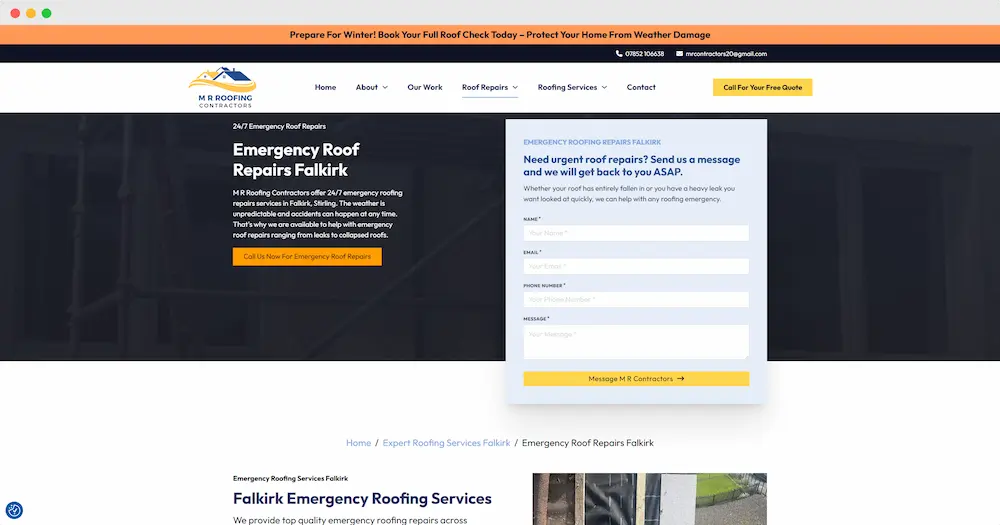 We took that stress away for them. Now all they have to do is focus on the roofing and we handle the rest. We’ve taken them from the deep pages of Google all the way to the front page for many relevant local keywords including “Falkirk Roofing Services”, “Emergency Roofing Falkirk” and many more.